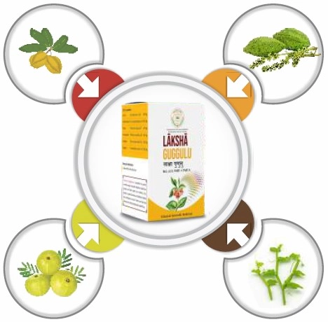 Laksha (Laccifer lacca, Gall), Asthisamhara (Cissus quadrangularis, St), Arjuna (Terminalia arjuna, Bk), Ashvagandha (Withania somnifera, Rt), Nagabala (Sida veronicaefolia, Rt) 1 part each & Shuddha Guggulu (Commiphora mukul, Or) 5 parts.